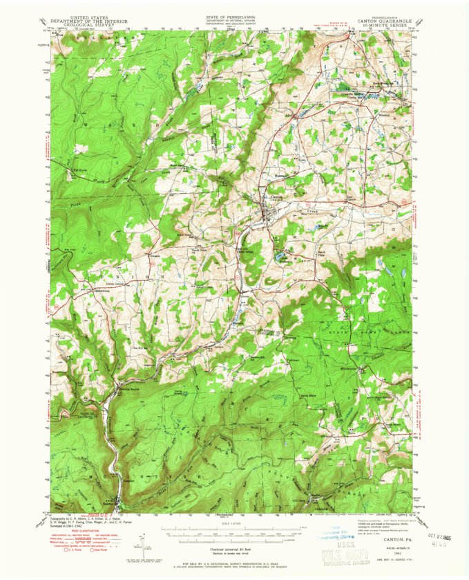 Canton, PA (1942, 62500 Scale) Map by United States Geological