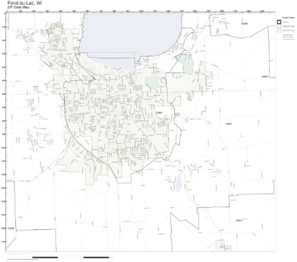 Amazon.com: ZIP Code Wall Map of Fond du Lac, WI ZIP Code Map Not