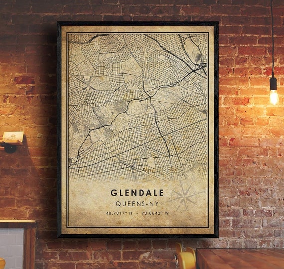 Glendale Vintage Map Print Glendale Map Queens NY Map Art Glendale