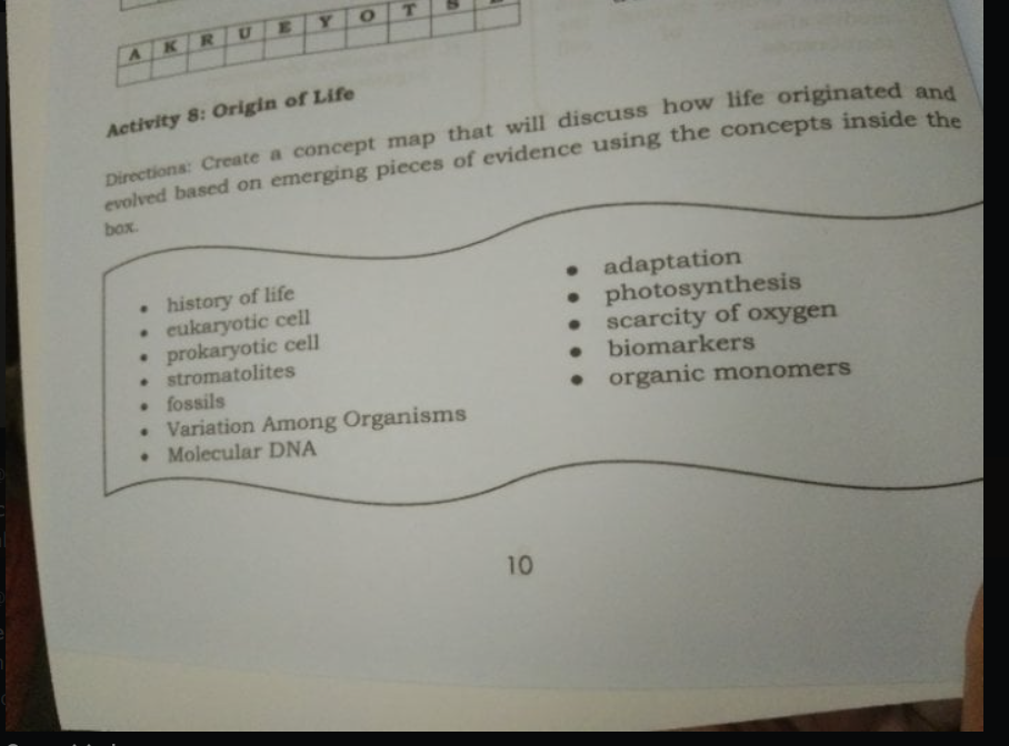 Solved o Y O T E U R A K Activity 8: Origin of Life | Chegg.com