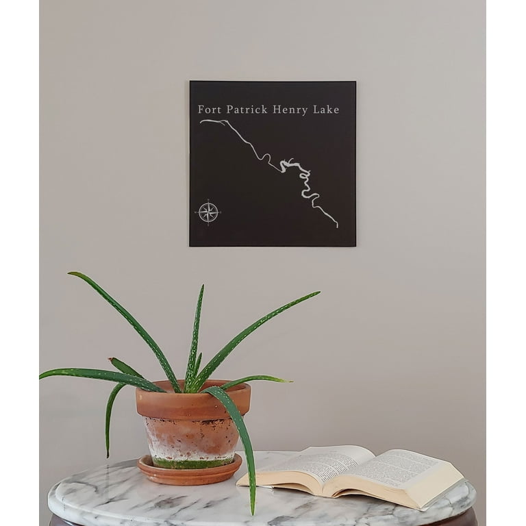 Fort Patrick Henry Lake Map 12×12″ Black Metal Wall Art Office