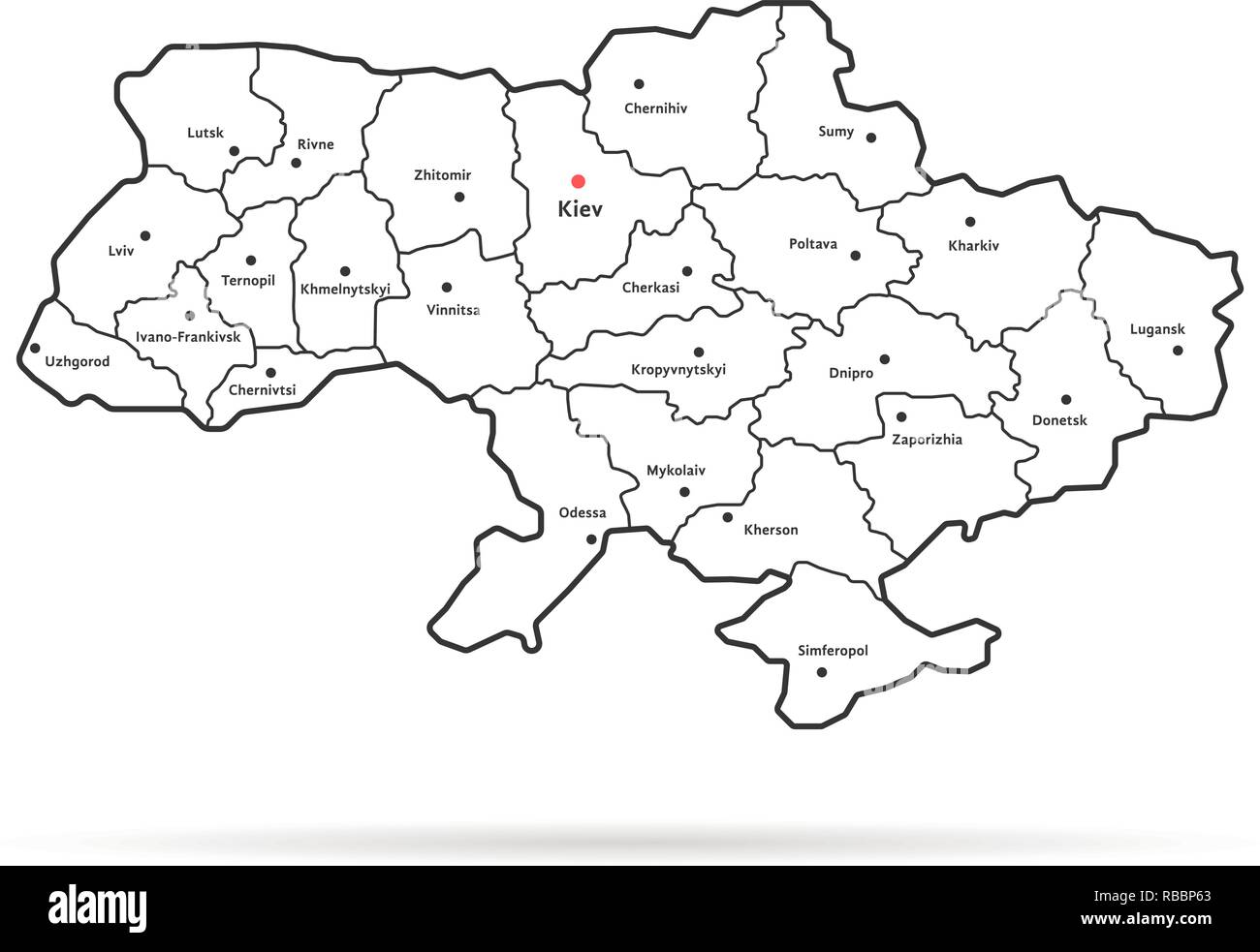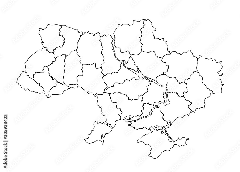 black thin line ukraine map regional centers Stock Vector Image