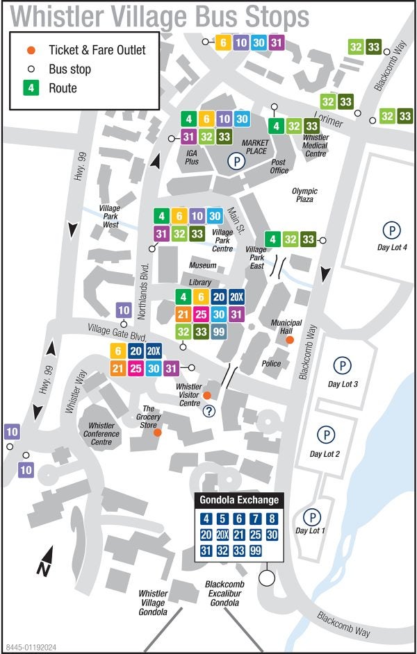 BC Transit Whistler bus route map, of the Resort Municipality of
